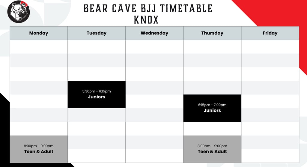 Bear Cave BJJ Knox operates out of the Kando Martial Arts centre on Wadhurst Drive, Boronia. Just off Lewis Rd, in behind Knox City Shopping Centre.